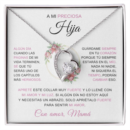 Caja con rosa eterna y collar de corazón con nombres personalizados