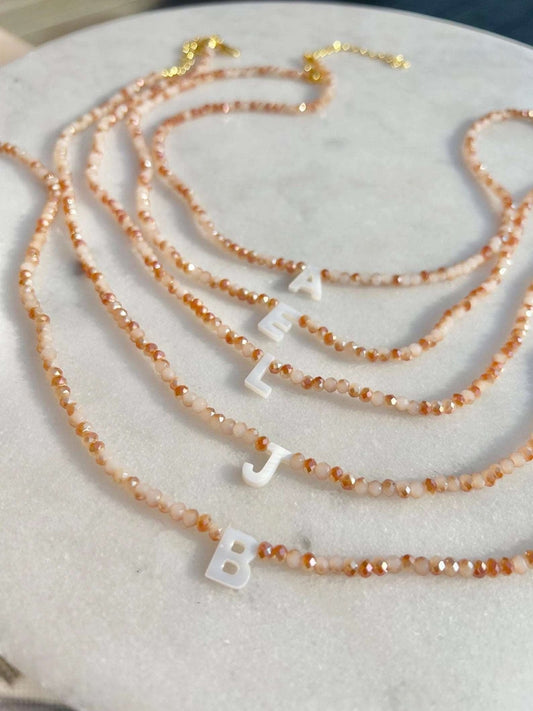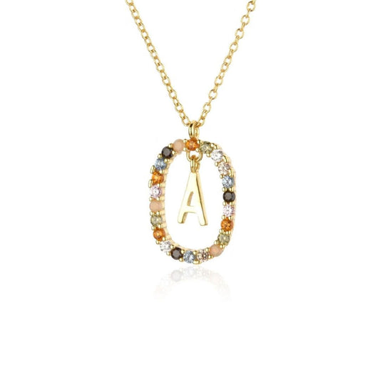 Collar con inicial y cristales multicolores